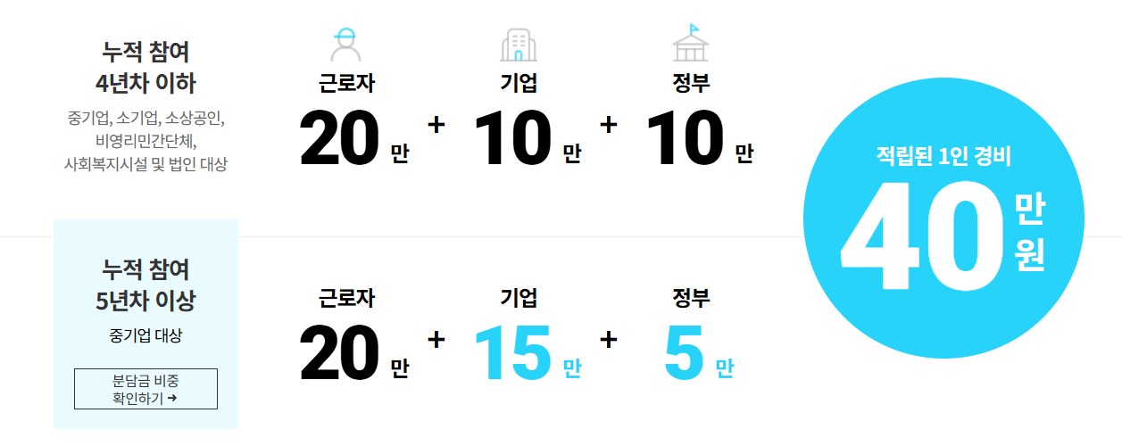 근로자가 20만 원, 회사가 10만 원, 정부가 10만 원을 더해 총 40만 원! 이렇게 모인 돈으로 여행, 숙박, 체험 활동까지! 뭐든지 다 가능함다! 근데 조건이 있다? 과연 누가 신청할 수 있을까요?